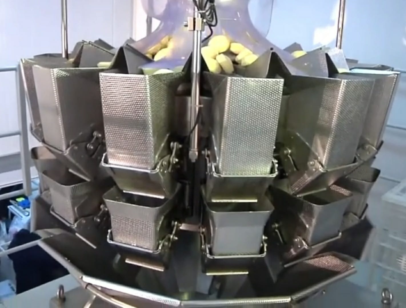 DOSADOR MÚLTIPLO CABEÇOTE 08 CANAIS: Equipado com 08 canais de analise combinatória que garantem precisão e velocidade no alcance do peso alvo. Ideal para fracionamento de pão de queijo congelado e alimentos congelados em geral.